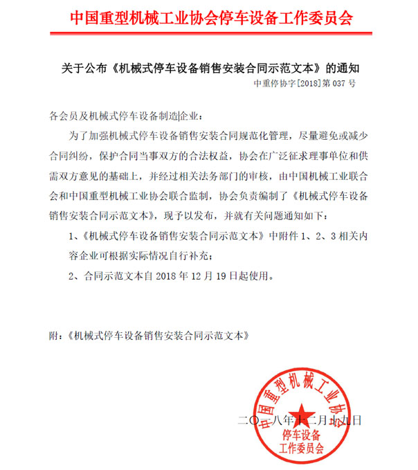 關(guān)于公布《機(jī)械式停車設(shè)備銷售安裝合同示范文本》的通知